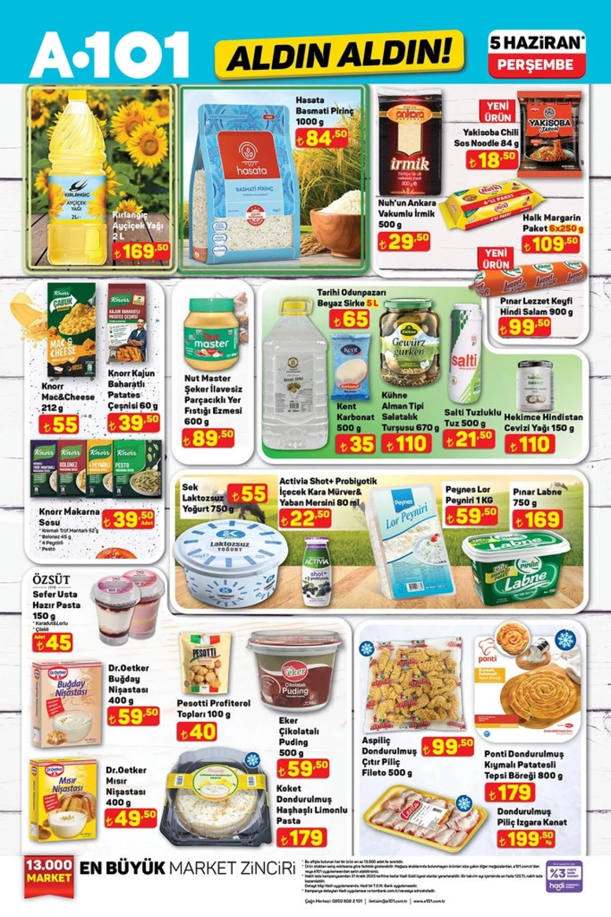 A101’in yeni kampanyasında sadece ayçiçek yağı değil, aynı zamanda birçok temel tüketim malzemesi de indirimli olarak yer alıyor. İşte bazı öne çıkan ürünler: