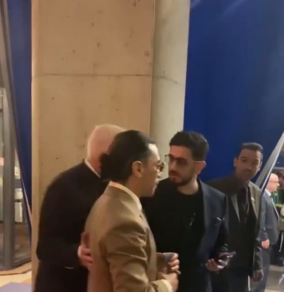 Tam bu sırada Nusret’in yanındaki kişi ile güvenlik ekibi arasında gerginlik tırmandı. Taraflar arasında kısa süreli fiziksel temas ve itişme yaşandı. O anlar çevredeki bazı izleyiciler tarafından telefonla kaydedildi.
