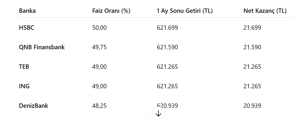 Mevduat yatırımında kazanç, sadece faiz oranı ile sınırlı değil; vade, komisyonlar, stopaj oranı gibi unsurlar da önemli. Ancak genel tabloda öne çıkan bankalar şöyle: